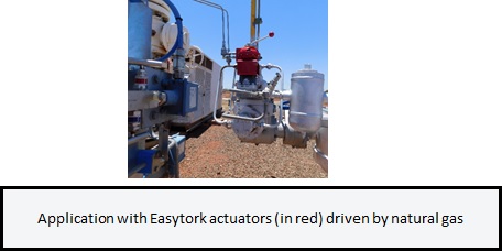 - Pneumatic actuators in natural gas or petroleum industries are often powered by high-pressure natural gas